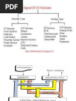 are pressure, temperature, speed, etc. Analog output devices respond to a range of output values from the controller. Common analog output signals include motor speed, valve position, air pressure, etc. I/O modules connect "real world" field devices to the controller. They convert the electrical signals used in the field devices into electronic signals that can be used by the control system, and translate real world values to IO table values. I/O modules communicate with PLC CPU in one of three ways: Backplane - The I/O modules can be located in the same rack or station. Communications then takes place within the rack or across the backplane. Backplane extension - backplane extension modules allow I/O modules to be located in racks or stations which are separated from the controller. Device network - modules can communicate with a controller over a network. Industrial networks are used to interconnect field level devices with controllers. Common IO networks are FieldBus, Profibus, and DeviceNet. "Point Count" and the Size of the PLC System The number of I/O devices used within a control system is called its point count. Analog device data requires significantly more manipulation and processing than digital device data. Digital and analog point counts are typically considered separately. The total number of digital and analog points is used to give an indication of the size of a control system.