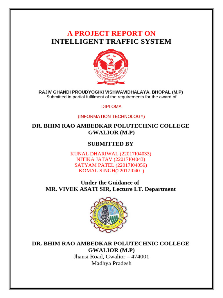 project Report entitled “INTELLIGENT TRAFFIC SYSTEM “, in partial