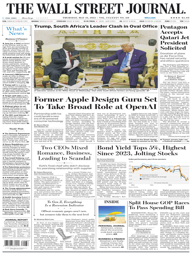 A2 | Thursday, May 22, 2025 * **** THE WALL STREET JOURNAL.