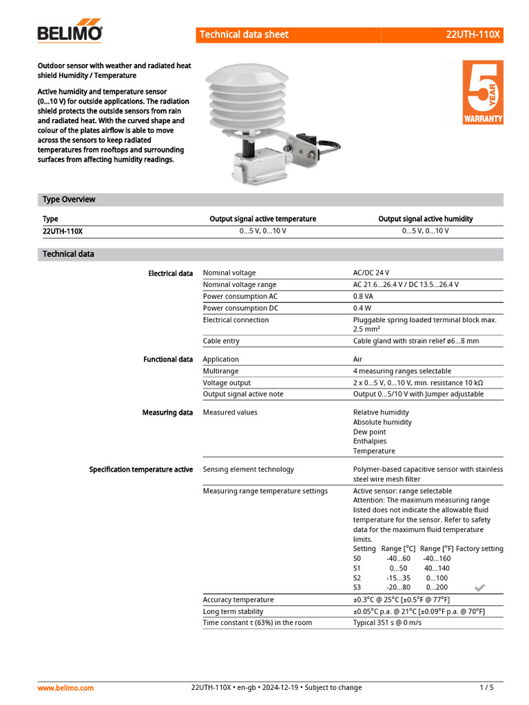 www.belimo.com 22UTH-110X • en-gb • 2024-12-19 • Subject to change 1/5