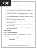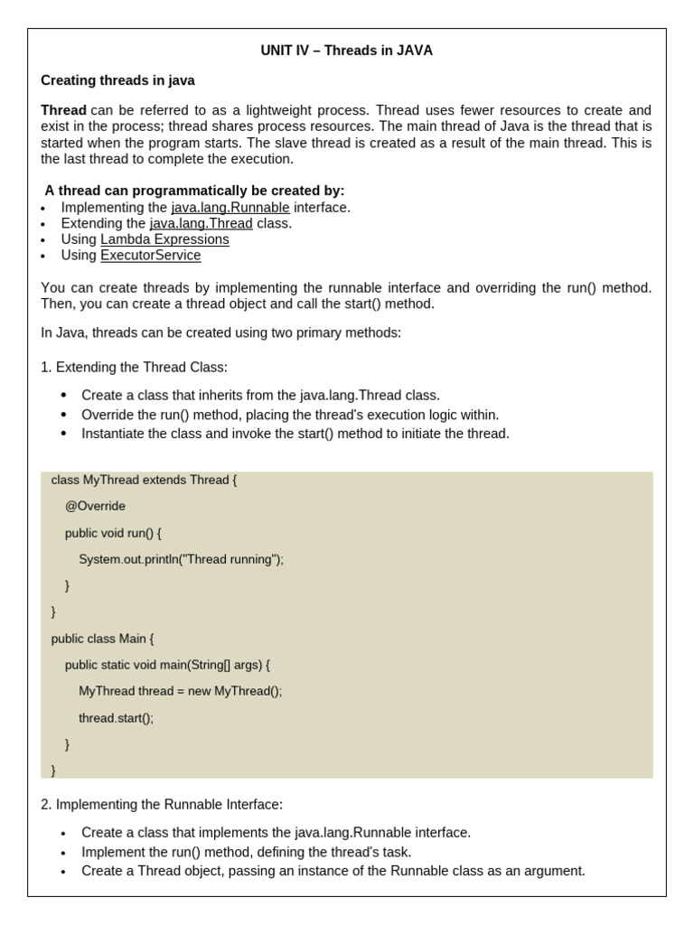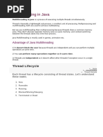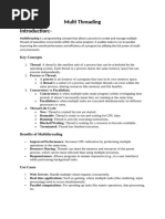This document provides an overview of threads in Java, including how to create, manage, and synchronize them. It discusses the thread lifecycle, methods for stopping and blocking threads, exception handling, thread priorities, and synchronization mechanisms. Understanding these concepts is essential for developing efficient multithreaded applications in Java.