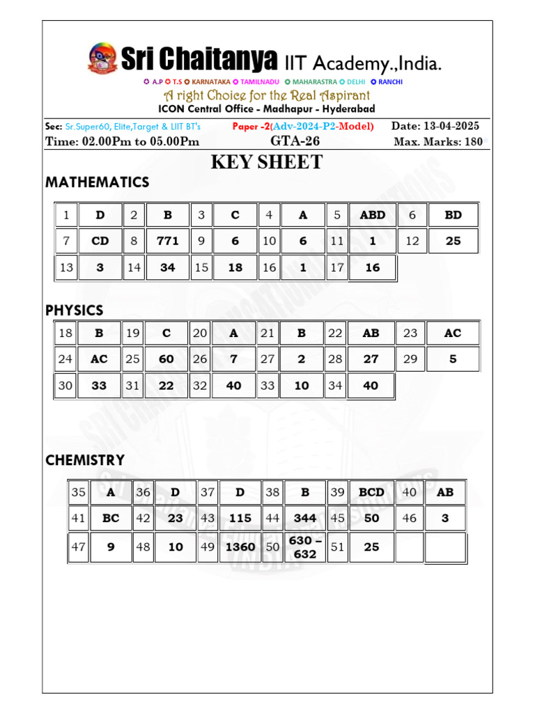 Sri Chaitanya IIT Academy 13-04-25_Sr.Super60, Elite, Target & LIIT BT's _Jee-Adv2024 –P2)_GTA-26_Key& Sol’s