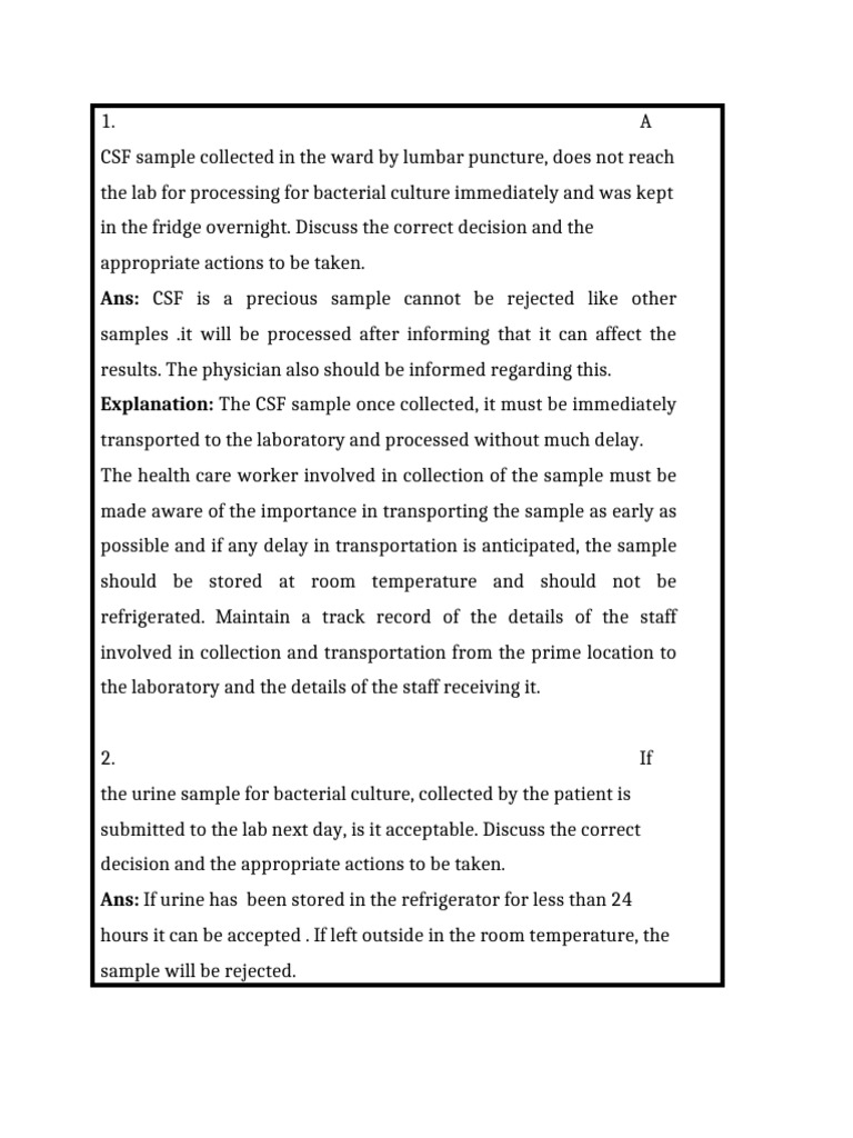 Ans: As it is a precious sample we will not reject the CSF sample.