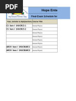 2024/25 second semster Final Exam Schedule for Freshman Program