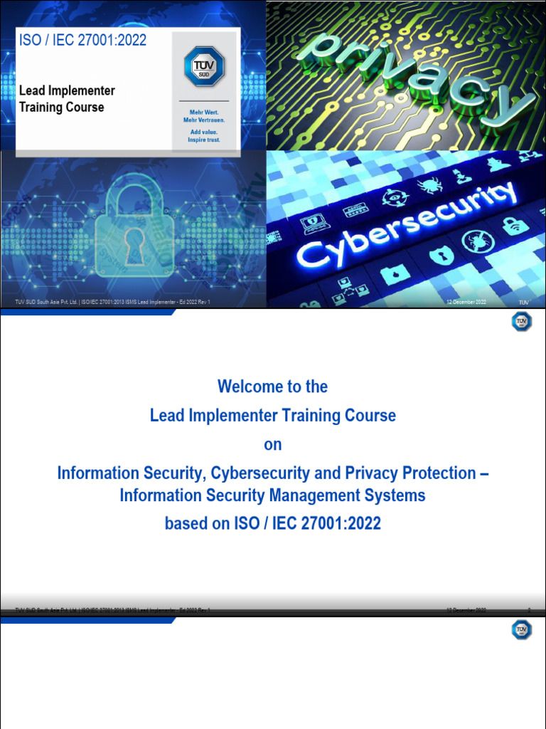 TUV SUD South Asia Pvt. Ltd. | ISO/IEC 27001:2013 ISMS Lead Implementer - Ed 2022 Rev 1 12 December 2022