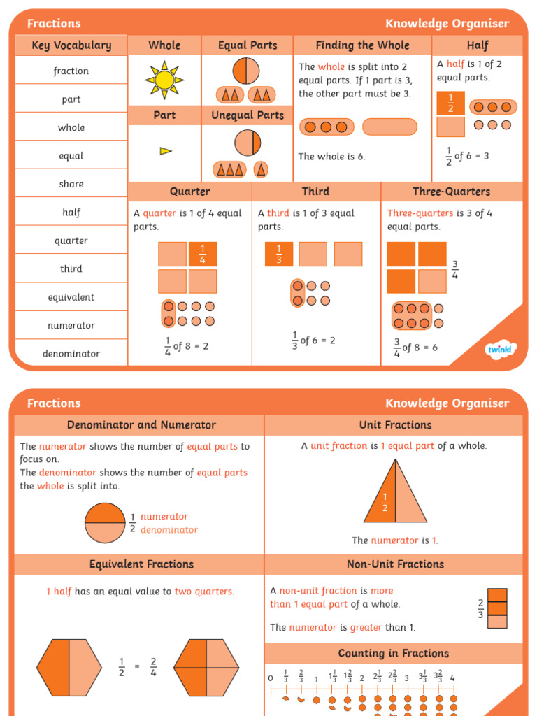The numerator shows the number of equal parts to A unit fraction is 1 equal part of a whole.