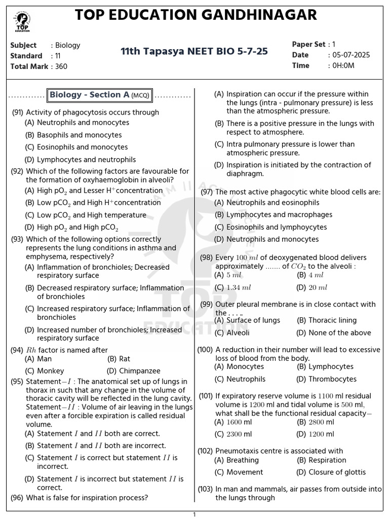 11th Tapasya NEET BIO 5-7-25 Date : 05-07-2025
