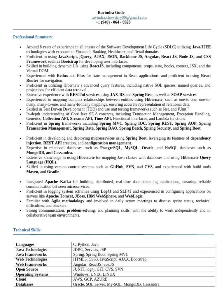 Proficient in Spring frameworks including Spring MVC, Spring IOC, Spring REST, Spring AOP, Spring