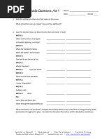 The document provides a detailed analysis of Act 1, Scene 3 of Macbeth, including a summary of the scene where the witches prophesy Macbeth's rise to power and Banquo's descendants. It also includes multiple choice questions, context questions, and essay prompts to aid students in understanding the text. The analysis highlights the contrasting reactions of Macbeth and Banquo to the witches' prophecies, emphasizing themes of ambition and skepticism.