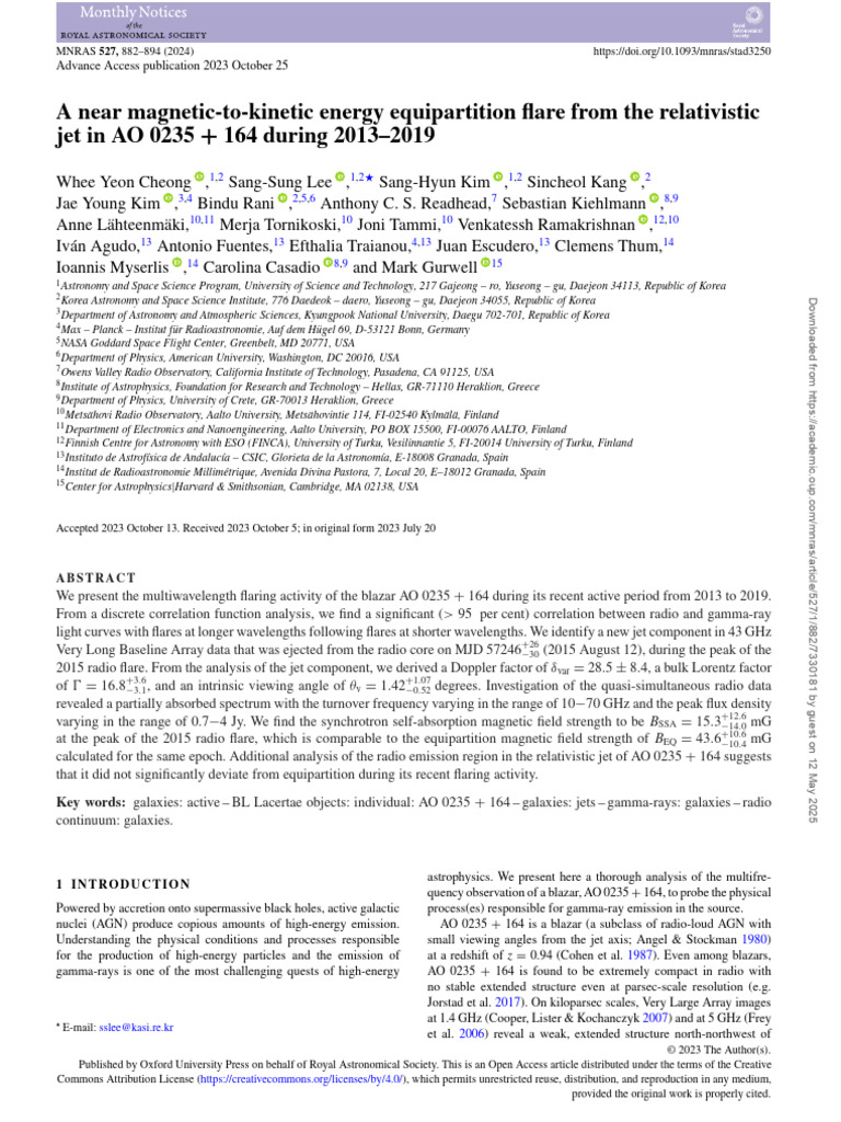 and ICT; grant no. 2022R1C1C1005255). IA acknowledges financial For questions regarding the availability of the 37 GHz Metsähovi