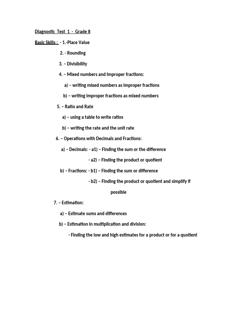 Diagnostic Test of Skills - 1 . – grade 8