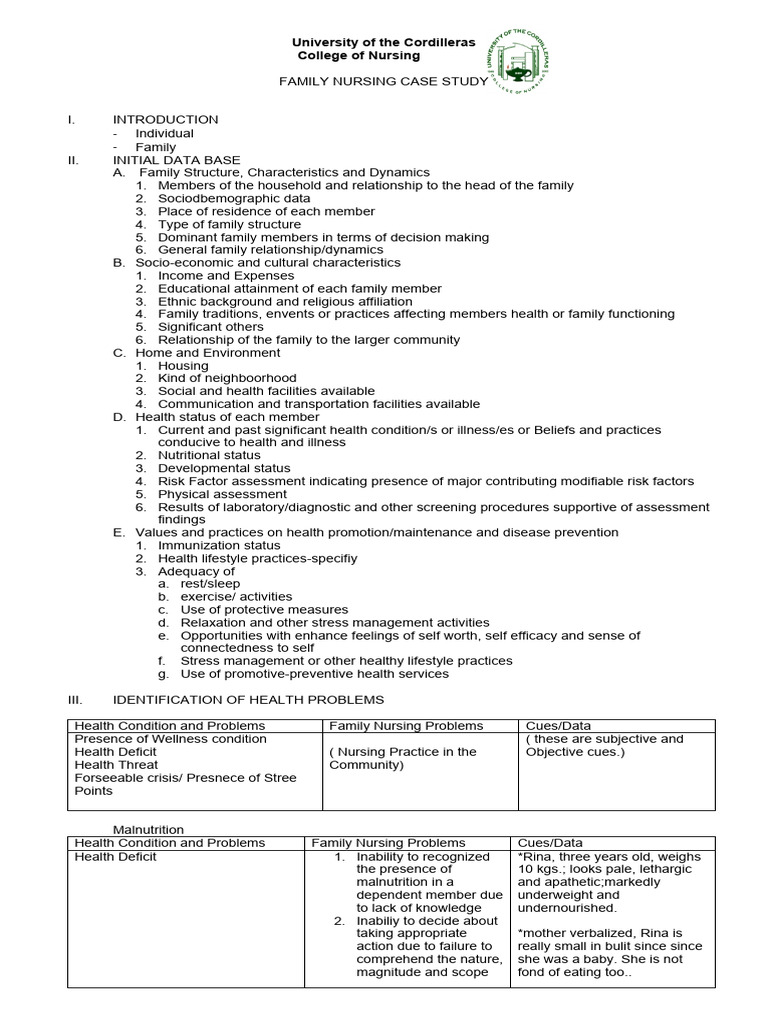 Health Condition and Problems Family Nursing Problems Cues/Data
