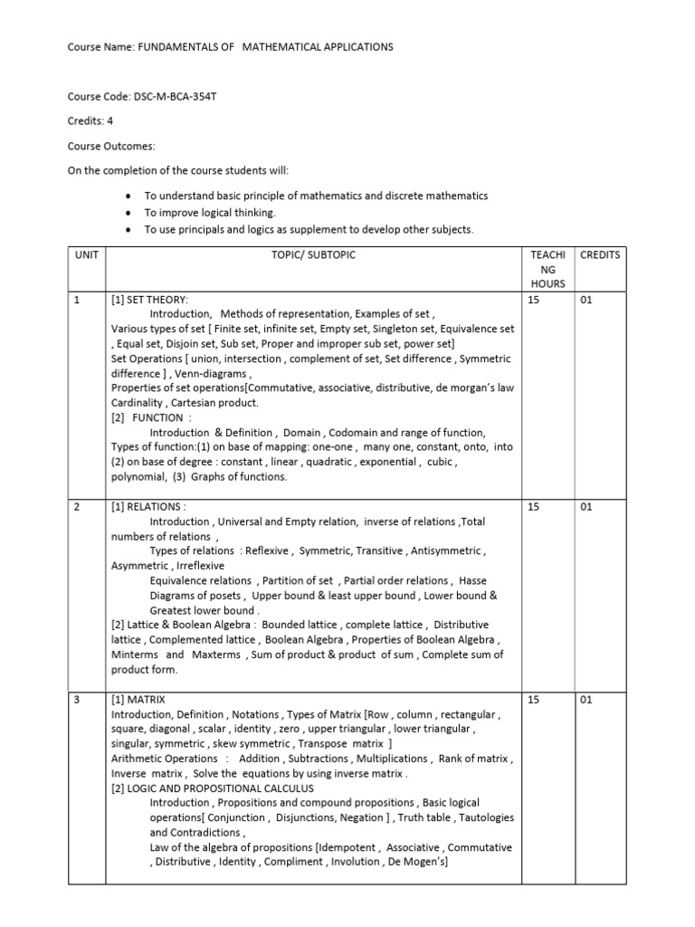 Course Name: FUNDAMENTALS OF MATHEMATICAL APPLICATIONS
