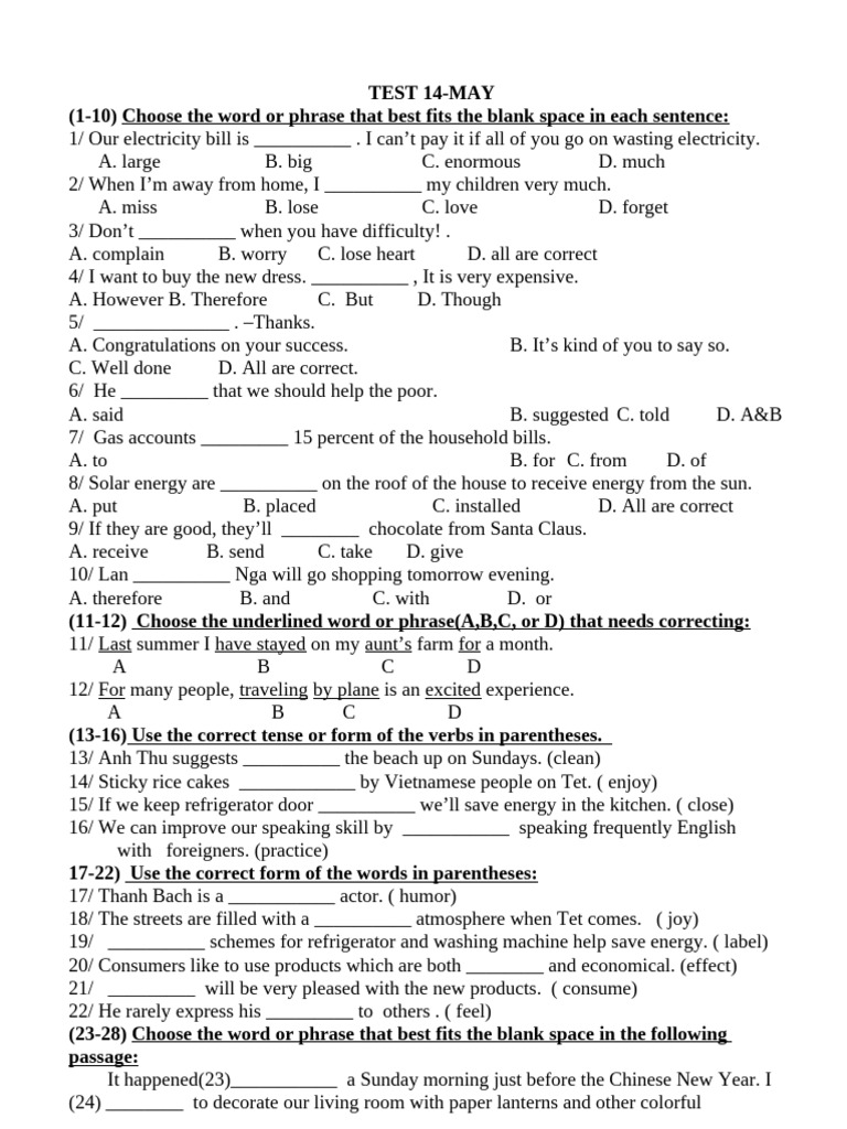 28/ A. who            B. which            C. what              D. it