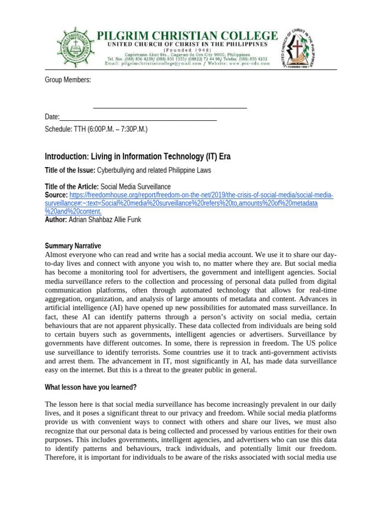 Title of the Issue: Cyberbullying and related Philippine Laws