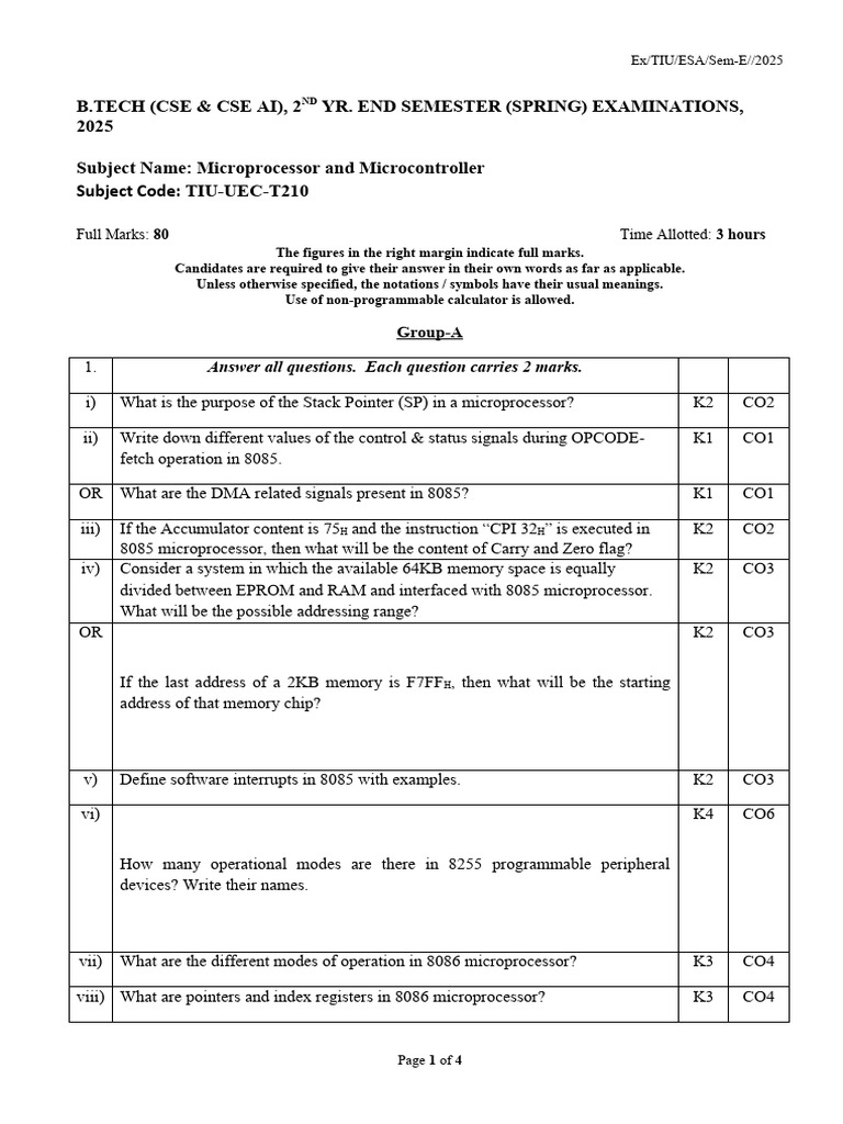 x) Write down any four special function registers in 8051 microcontroller. K3 CO5