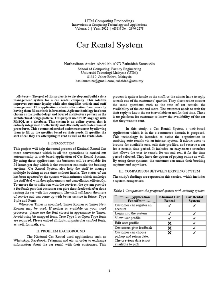 procedures. This automated method assists consumers by allowing In this study, a Car Rental System a web-based