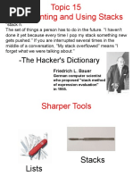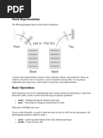 This document provides an overview of stack data structures, including their definitions, representations (array and linked list), and operations (push, pop, status). It also discusses applications of stacks in arithmetic expression evaluation, recursion implementation, and memory management. Additionally, it covers the conversion of infix expressions to postfix notation and the evaluation of postfix expressions.