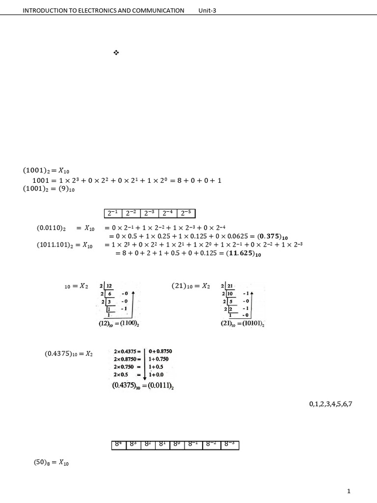 (22.34)8 = 2 × 81 + 2 × 80 + 3 × 8−1 + 4 × 8−2 = 16 + 2 + 3 × 1/8 + 4 × 1/64 = (18.4375)