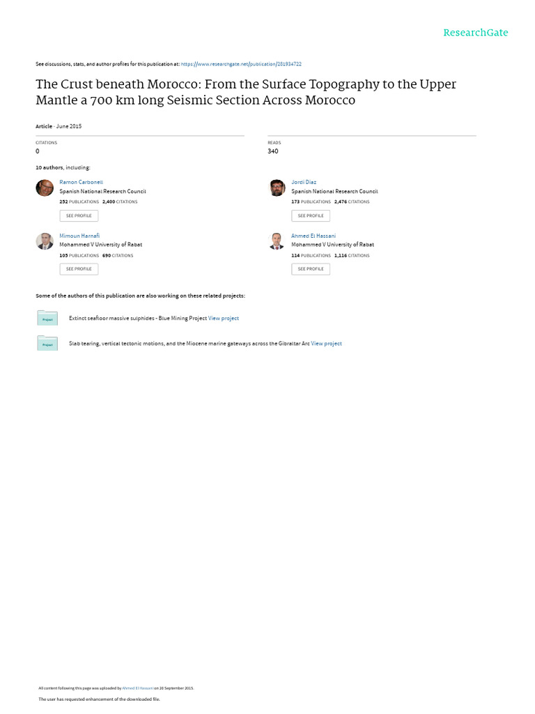 The Crust Beneath Morocco From Surface Topography To Upper Mantle A 700 KM Long Seiemic Section Across Morocco