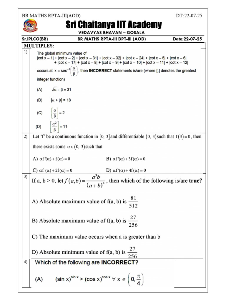 Sr.IPLCO(BR) BR MATHS RPTA-III DPT-III (AOD) Date:22-07-25