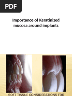 This consensus report evaluates the importance of keratinized peri-implant mucosa (KPIM) in maintaining the health of peri-implant tissues and discusses surgical interventions for augmenting KPIM. It concludes that reduced KPIM width is associated with increased inflammation, discomfort, and peri-implantitis, while free gingival autogenous grafts are recommended for increasing KPIM dimensions. The report emphasizes the need for routine assessment of KPIM in patients with dental implants and suggests surgical options when KPIM is inadequate.