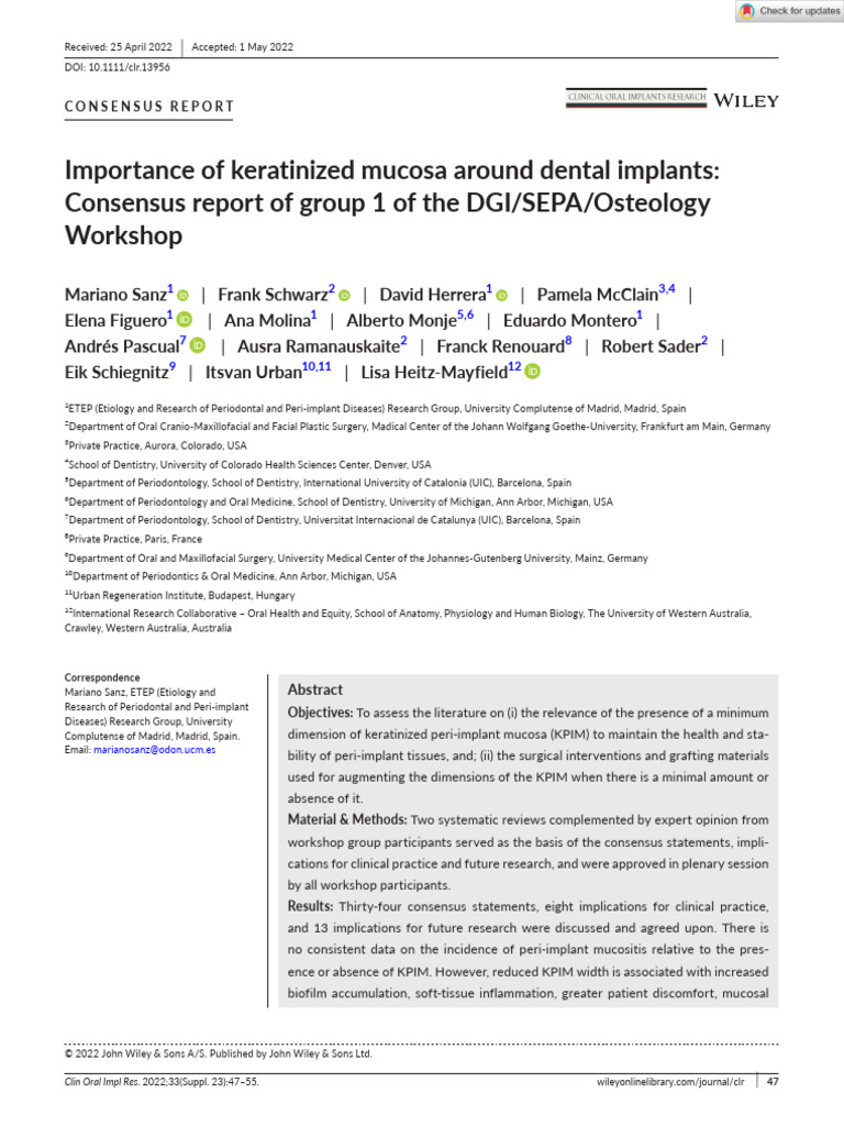 2 Clinical Oral Implants Res - 2022 - Sanz - Importance of Keratinized Mucosa Around Dental Implants Consensus Report of