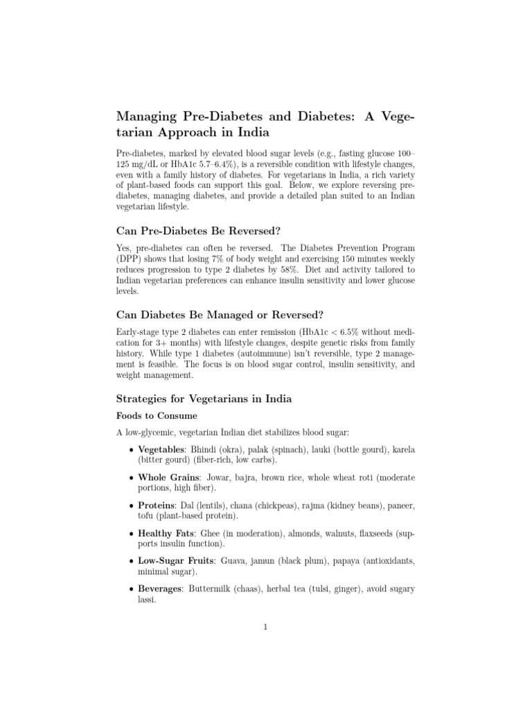 diabetes, managing diabetes, and provide a detailed plan suited to an Indian