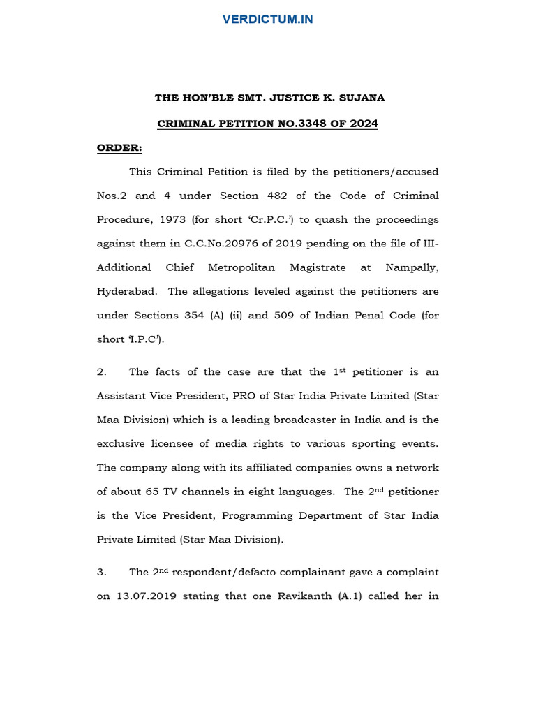 Hyderabad. The allegations leveled against the petitioners are