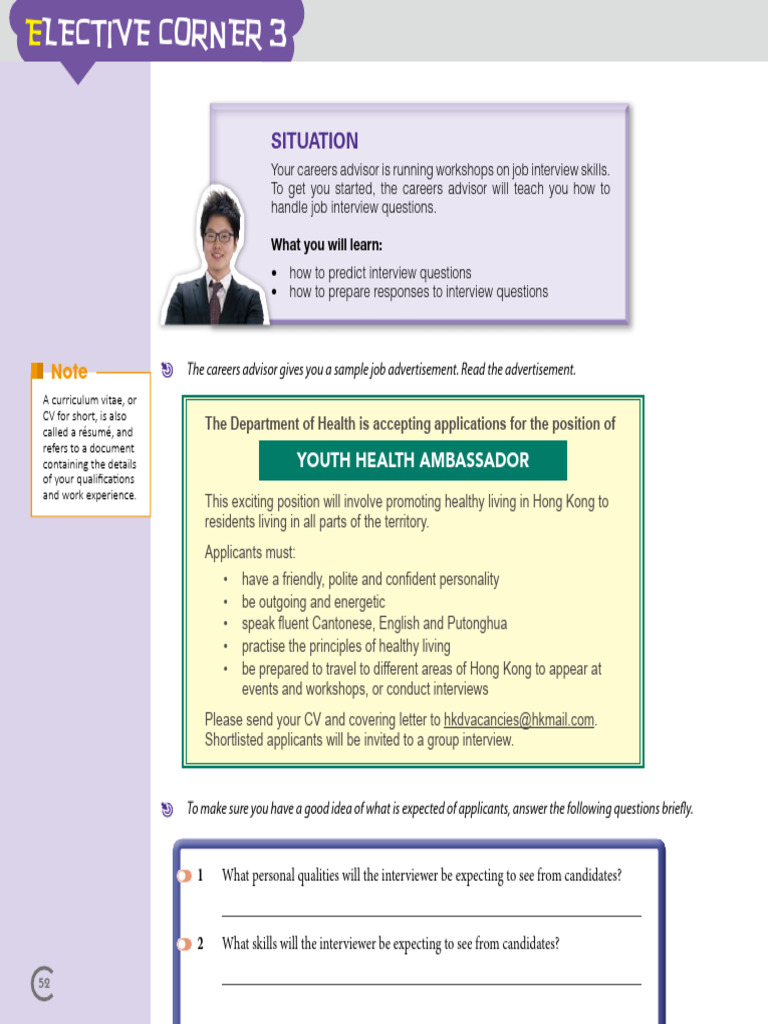 Note The careers advisor gives you a sample job advertisement. Read the advertisement.