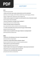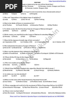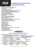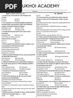 The document consists of a series of questions related to various historical, geographical, and social topics, covering events from World War I to the social reform movements in India. It includes multiple-choice questions about key figures, treaties, and significant events in history, as well as questions about India's geography, agriculture, and resources. The content is structured in units, each focusing on different themes and periods.