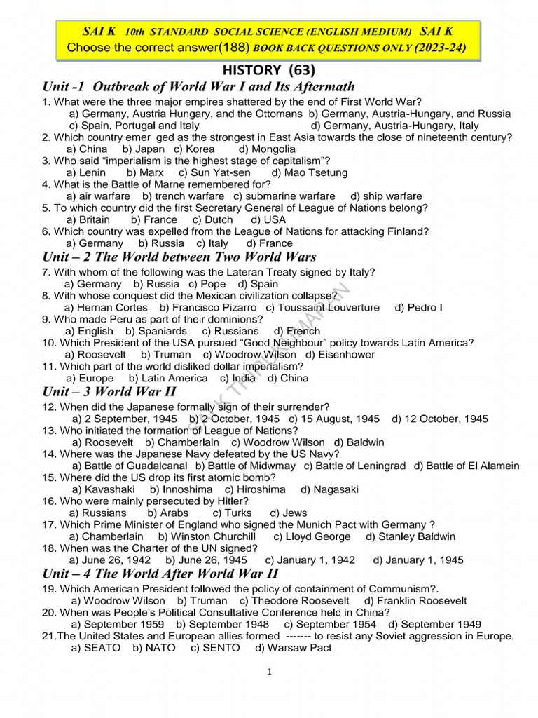 Sai K 10 Ss Choose em Question Bank 2l2kwnwnsns W Wlwlwlwlw. W
