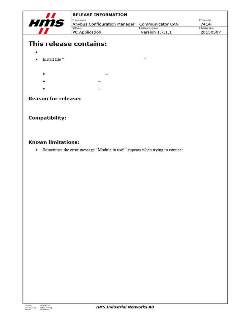 Configurations created with this version of ACM Communicator CAN can be downloaded to devices with