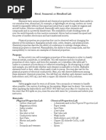 then used your observations to classify a material as a metal or malleability, reactivity,