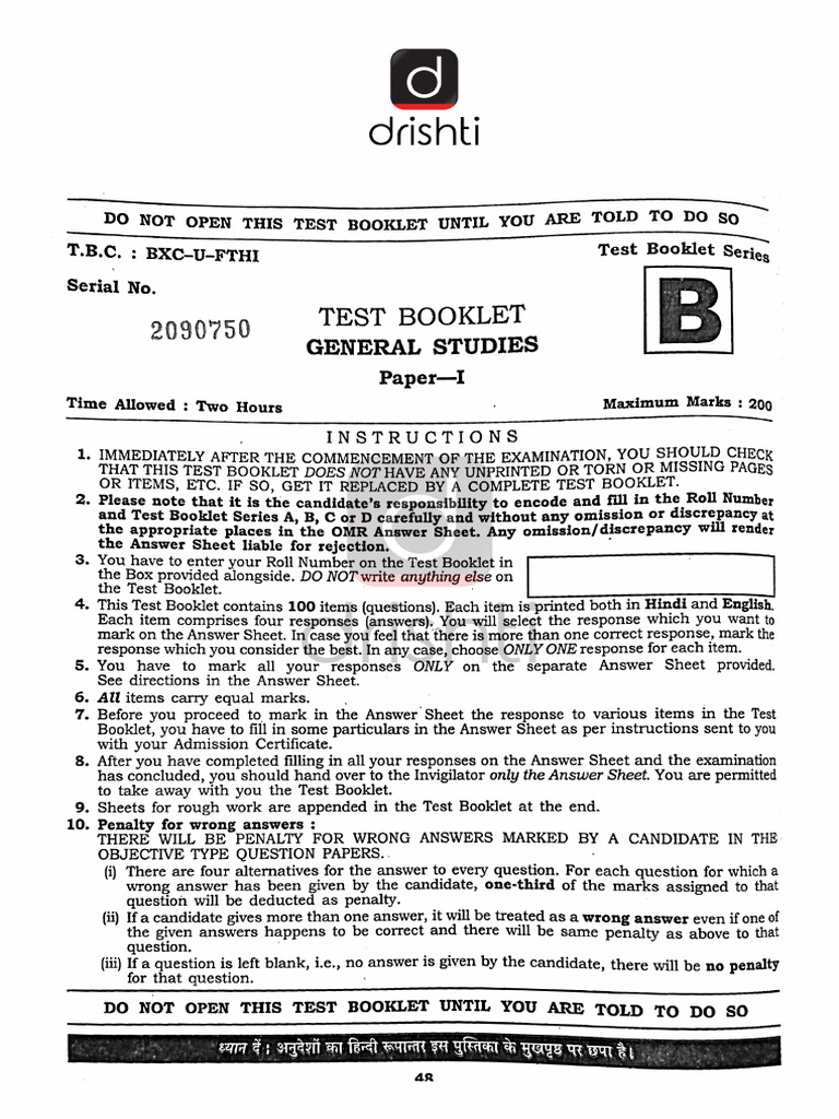 4. This Test Booklet contains 100 items (questions). Each item is/printed both in Hindi and English,