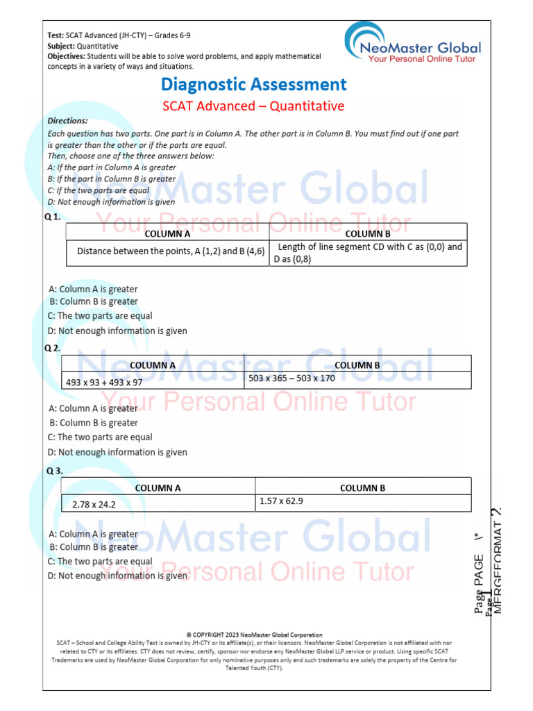 SCAT – School and College Ability Test is owned by JH-CTY or its affiliate(s), or their licensors. NeoMaster Global corpora on is not