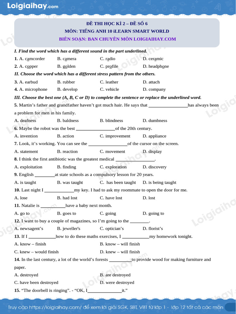 ĐỀ THI HỌC KÌ 2 – ĐỀ SỐ 6