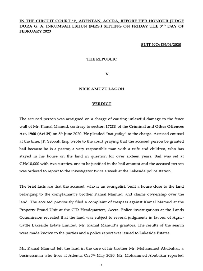 damage to Mr. Mamud’s wall. The accused person is therefore acquitted and discharged