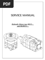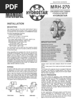 IMPORTANT NOTE: The RS(200/201) Series Motors depend on the correct orientation of parts as well as correct internal timing for proper motor operation. Before disassembling the motor, it is highly recommended that paint or a marker be used to make a V shaped set of lines from the endcover to the housing. This will aid in reassembling the motor components properly. It is also important that the steps involving internal parts timing be followed carefully to insure proper motor operation. A) Remove all shaft related components from shaft (21) (i.e. keys, wire rings, nuts). To aid in reassembly of the motor, make a V shaped set of lines from the endcover (16) to the housing using either paint or a marker. With shaft facing down, secure motor in vise by clamping on to housing (19). B) Loosen and remove four bolts (18) holding motor assembly together. Remove endcover (16). Remove body seal (8) and discard seal. Remove rotor assembly (14) and wear plate (13). Remove body seals (8) from rotor assembly (14) and housing (19) and discard seals. Remove drive link pin (15) and drive link (12) from motor and lay aside. C) Gently tap shaft (21) upward through housing (19) and remove through rear of housing. Turn shaft over and remove cooling plug (20). Remove housing (19) from vise and turn over. Pry dust seal (1) from housing. Push the seal carrier (9), thrust washer (10) and thrust bearing (11) down and remove through rear of housing. (NOTE: When removing items 9-11, care should be taken so that housing bore is not scratched or nicked.) If a new seal carrier and thrust washer is included in kit, old items may be discarded. If not, carefully pry shaft seal (7), Teon backup seal (6) and metal backup shim (5) from seal carrier (9) and discard items 5-7. Lay seal carrier (9) aside. Remove wire ring (2), metal backup shim (3) and high pressure seal (4) from inner bore groove of housing with a small screwdriver and discard items. At this point, all parts should be cleaned in an oil-based solvent and dried using compressed air (For safety, observe all OSHA safety guidelines). All new seals should be lightly coated in clean oil prior to installation. D) Place shaft (21) on a clean at surface with output end facing up. Place thrust bearing (11) then thrust washer (10) on shaft. Install shaft seal (7) down onto shaft (21) making sure that lip on seal faces down (See Figure 1 for correct seal orientation). Install the Teon backup seal (6) onto the shaft (21) with the at side up and the seal lip facing the shaft seal (7). Place the metal backup shim (5) onto the shaft and against the Teon backup seal (6). Place the seal carrier (9) onto the shaft (large end down) and carefully press the seal carrier (9) down onto the seal assembly using an arbor press and sleeve to compress the seals into the carrier. E) Install high pressure seal (4) into groove in housing. Install metal backup shim (3) against high pressure seal (4) in groove in housing bore by squeezing the shim (3) between thumb and forenger to bow shim (bow in the shim should be in the shape of a hill and not a valley for easier installation). While maintaining bow in shim, start the shim into the groove and use a small screwdriver to push the shim into groove. Install wire ring (2) into the groove making sure that the ends are butted. RS (200/201) SHAFT/DRIVE LINK TIMING PROCEDURES NOTE: To return the RS Series Motors to proper operation, the rotation code of the motor must be known. The rotation code of the motor is 200(standard) 201(reverse timed)- the rst 3 digits of the model code. If the rotational code is not known, motors that are to have the shafts turning clockwise (as viewed from the shaft end) should be timed using the 200 series and motors that are to have the shafts turning counterclockwise (as viewed from shaft end) should be timed using the 201 series. F) Turn shaft (21) over so that output end of shaft faces down. Install cooling plug (20) down into shaft (21) making sure large O.D. end of cooling plug (20) faces up. Lower drive link (12) into shaft making sure that timing mark end of drive link faces up and that the timing mark on the end of the drive link (12) is aligned with one of the through holes in the shaft (21). When splines contact each other, slowly rotate drive link (12) counterclockwise for a 200 series, or clockwise for a 201 series motor until drive link splines engage with those on shaft (21). G) Turn housing (19) over so that pilot of housing faces down and secure housing (19) in vise. Without disturbing seal carrier assembly (9) or drive link (12), carefully lower shaft assembly into housing. To seat seal carrier (9) against wire ring (2), gently tap drive link (12) down until end of shaft (21) is nearly ush with rear surface of housing. H) Place a body seal (8) in the groove in the rear surface of the housing (19). Using alignment marks as a guide, place wear plate (13) on housing making sure that notch in wear plate (13) is aligned with port side of housing (20) (See Figure 2). I) Place a body seal (8) in the groove in the face of the rotor assembly (14). Lower rotor (14) onto drive link (12) making sure that timing mark on drive link is aligned with a peak on the rotor (14) (See Figure 3). Once splines are engaged, rotate rotor (14) so that notch on rotor is aligned with notch on wear plate (13) and ports on housing (19) (See Figure 2). Insert drive link pin (15) into end of drive link (12) making sure that concave end faces up.