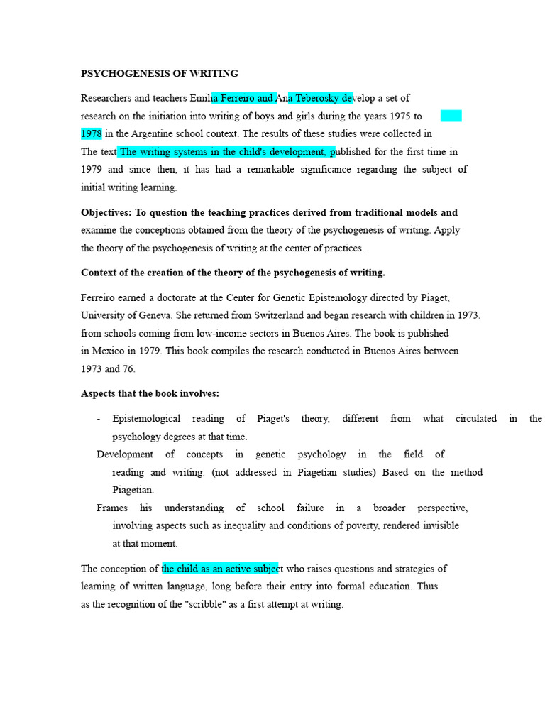 interpretation and application of the developments by Emilia Ferreiro and were understood and