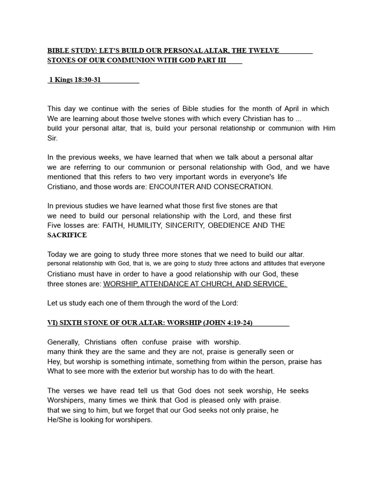 Biblical Study - Let's Build Our Personal Altar - The Twelve Stones of Our Communion With God - Part Iii