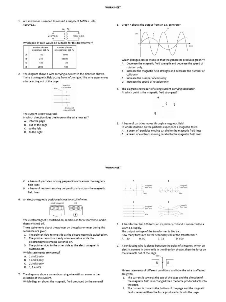 7. The diagrams show a current-carrying wire with an arrow in the are given.