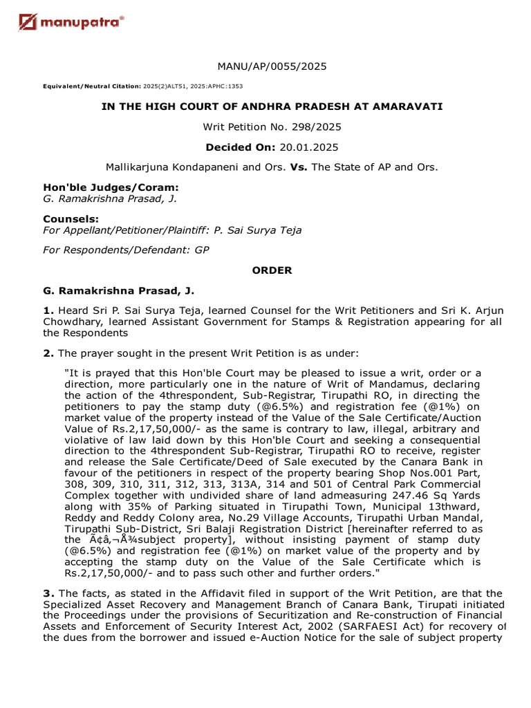 Inspector General, Registration and Stamps, Andhra Pradesh in the reference