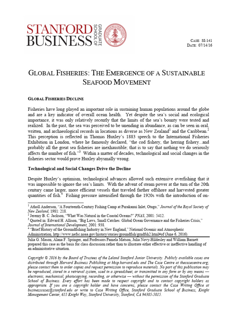 Global Fisheries: The Emergence of a Sustainable Seafood Movement SI-141 p. 3