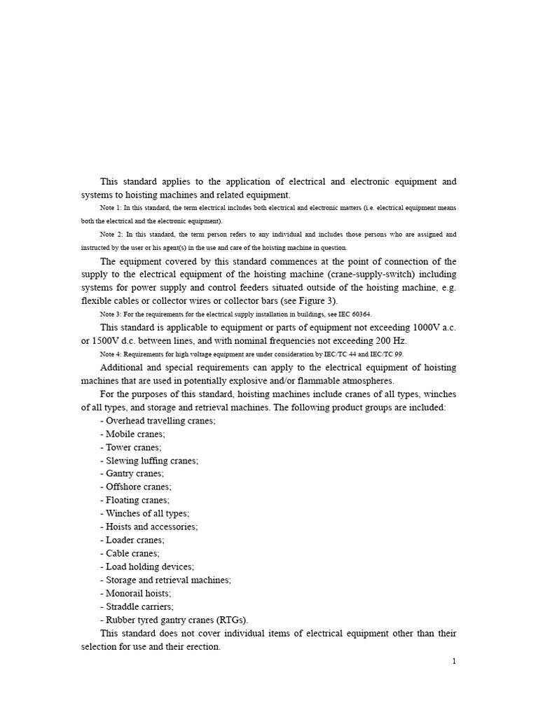 This standard is applicable to equipment or parts of equipment not exceeding 1000V a.c.