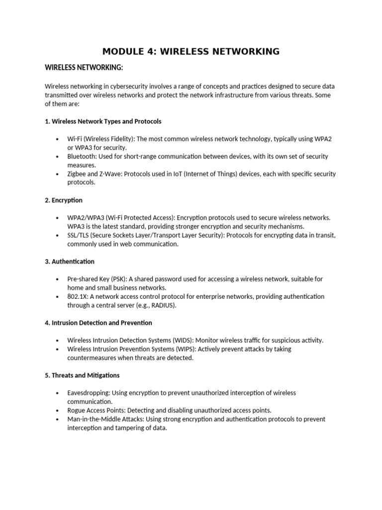 Wireless networking in cybersecurity involves a range of concepts and practices designed to secure data