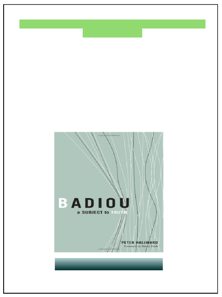 Badiou A Subject To Truth 1st Edition Peter Hallward