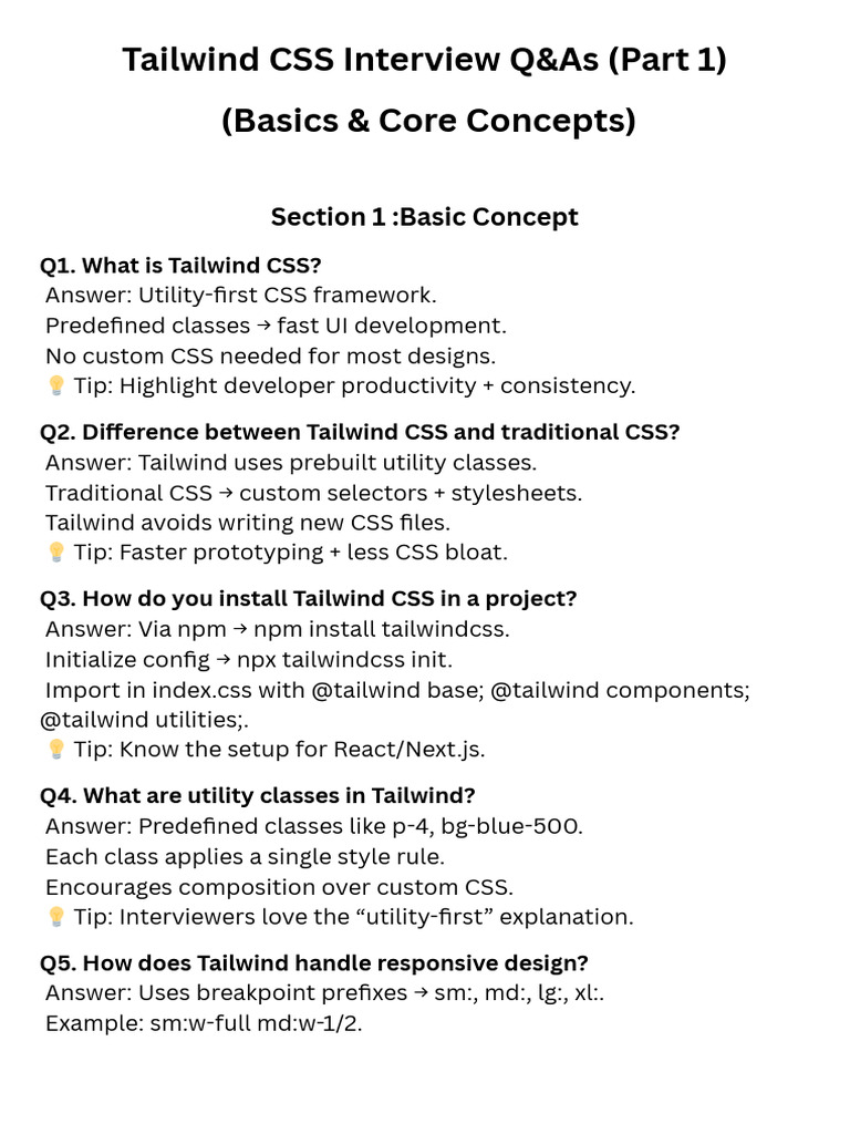 Q2. Difference between Tailwind CSS and traditional CSS?