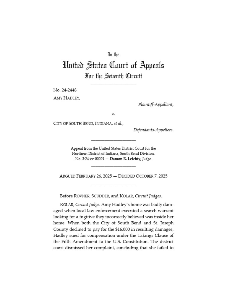 KOLAR, Circuit Judge. Amy Hadley’s home was badly dam-