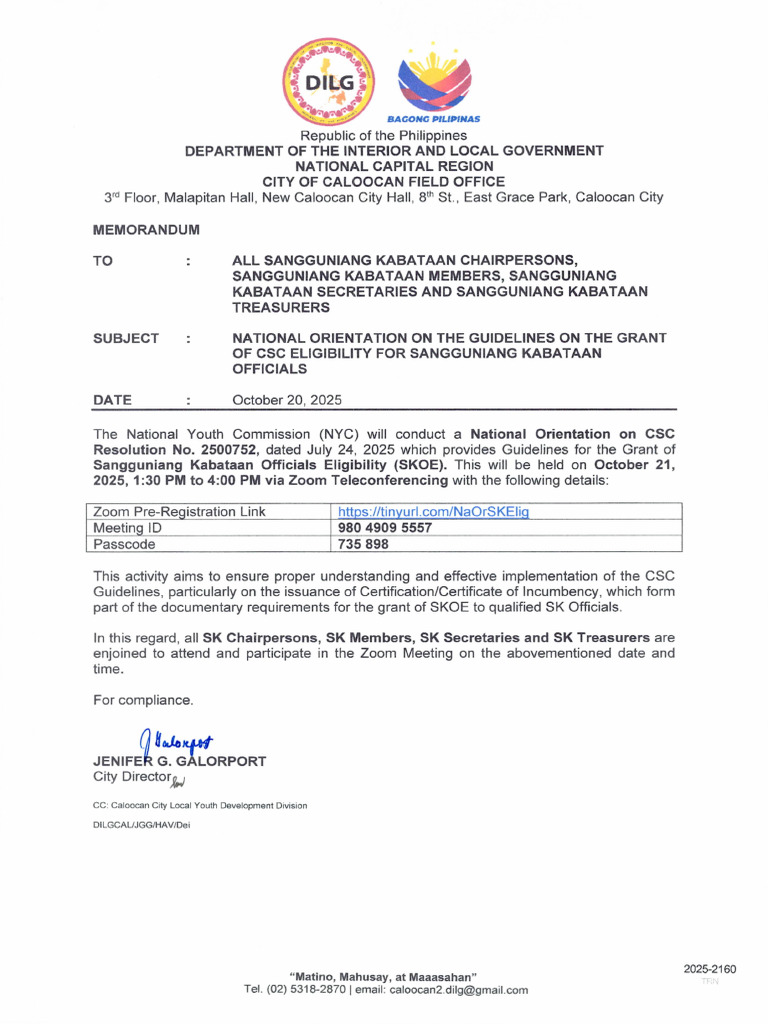 of your respective Local Youth Development officers (LYDos), sangguniang